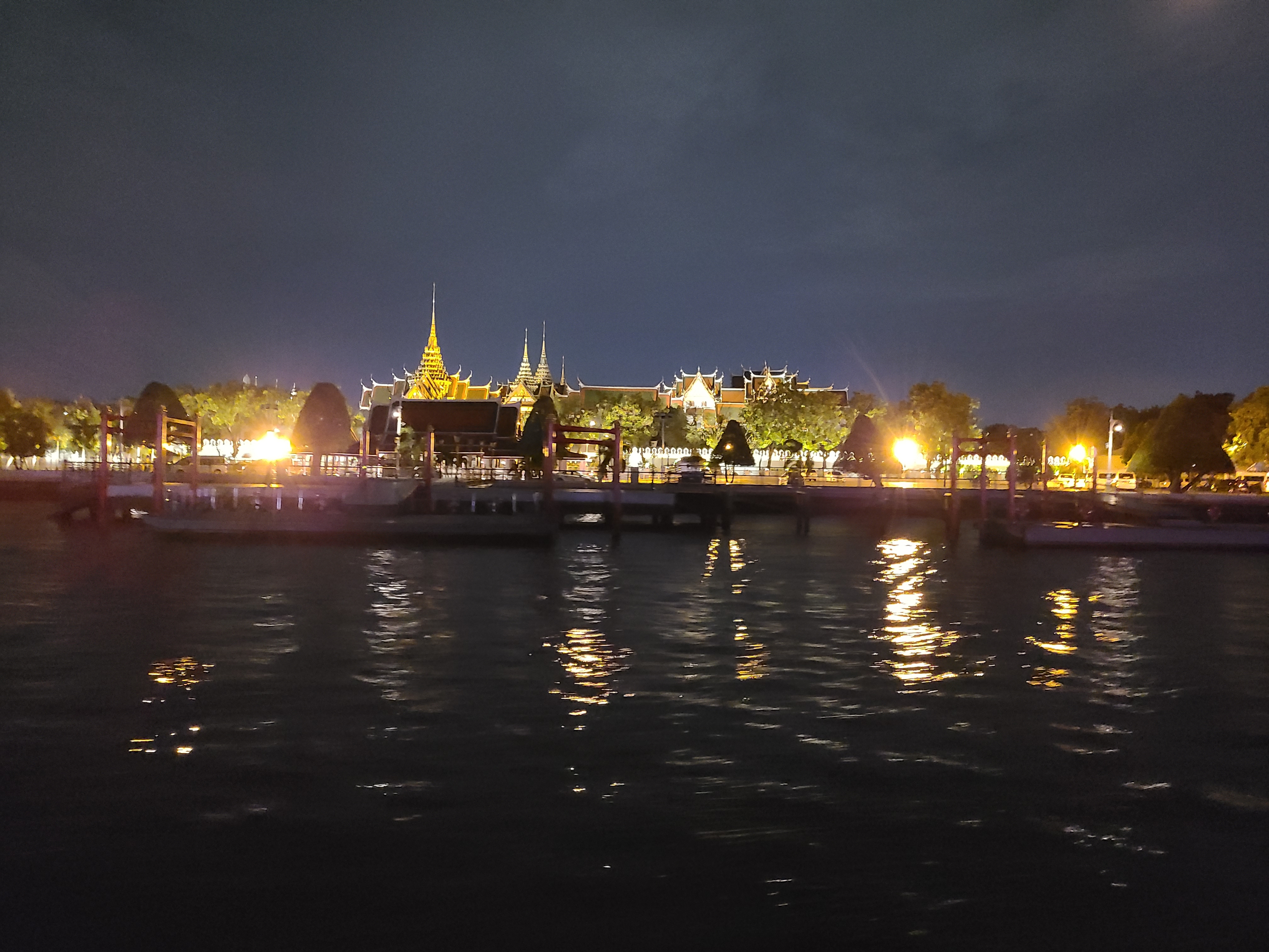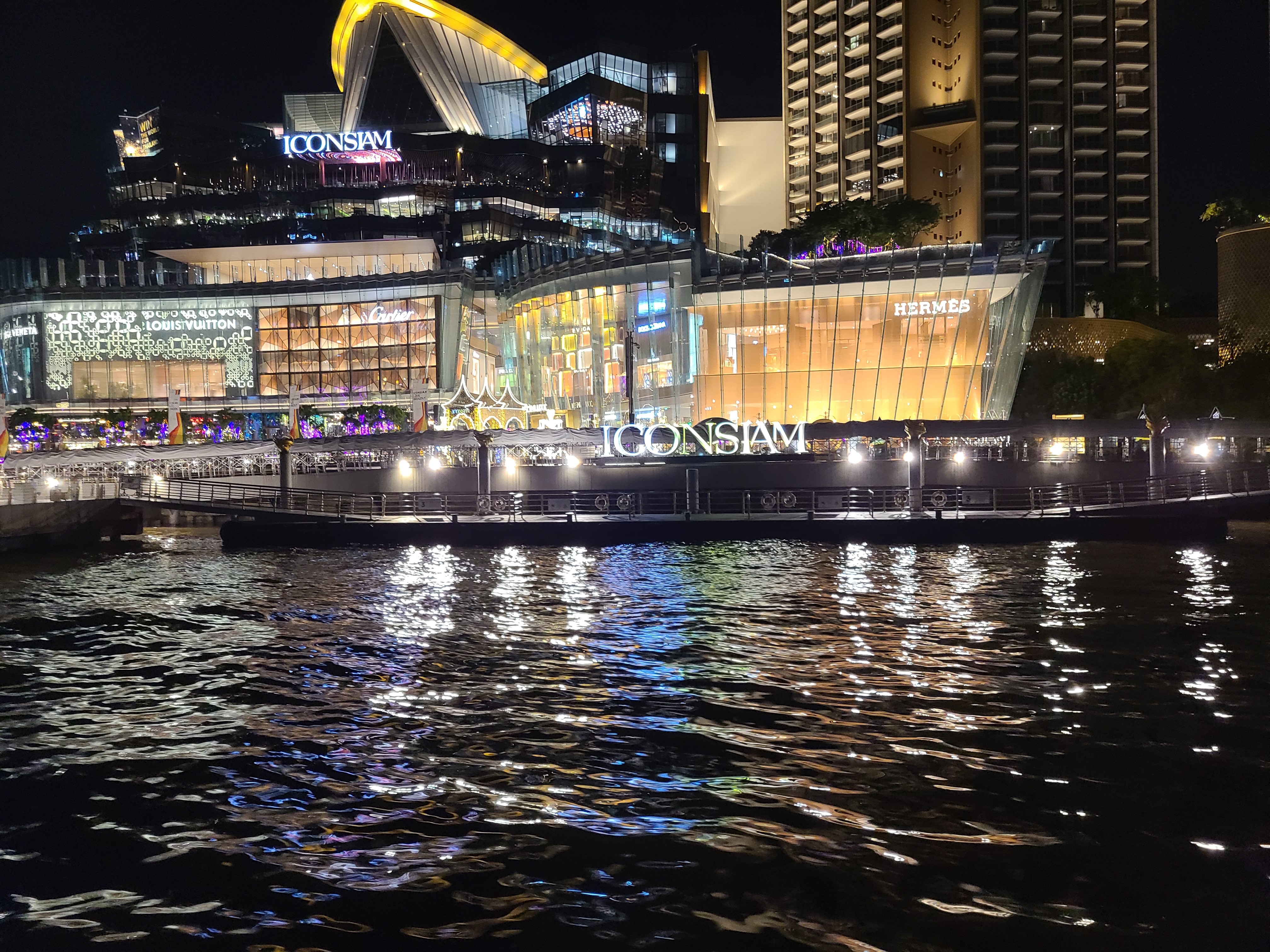밤에 강 위에서 바라보는 아이콘 시암~