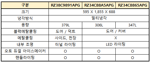 | 구분 | RZ38C9891APG | RZ34C88A5APG | RZ34C8865APG |