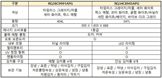 | 구분 | RQ38C9991APG | RQ34C8945APG |