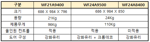 WF21A9400까지 동일한 모델번호가 3개,